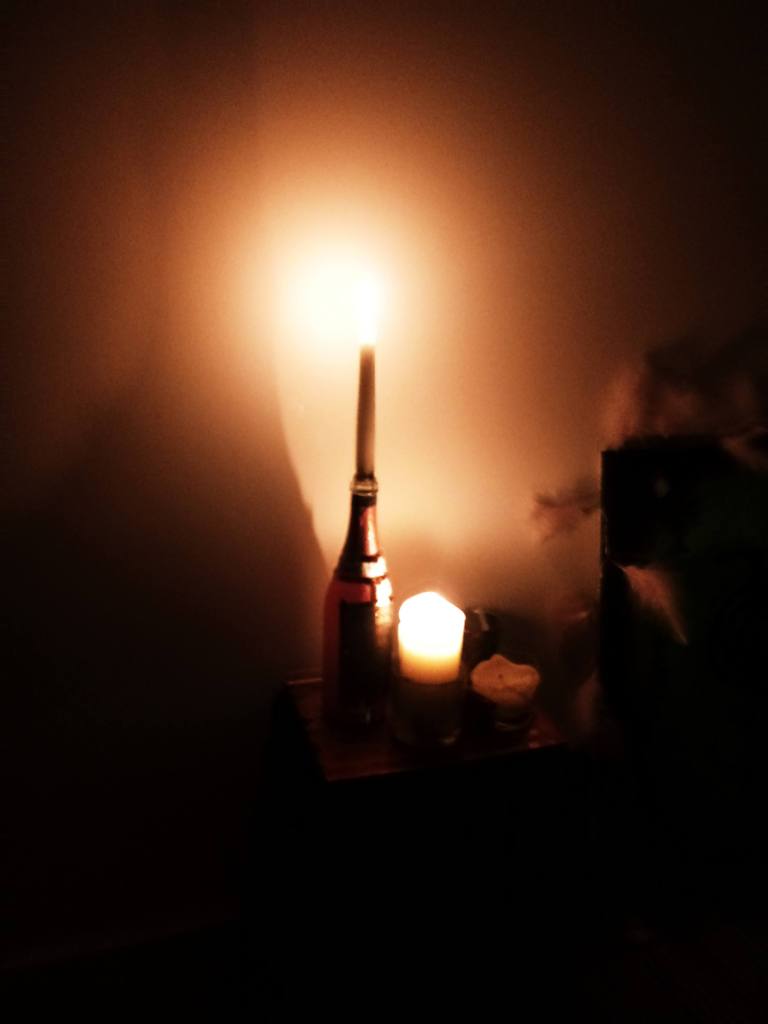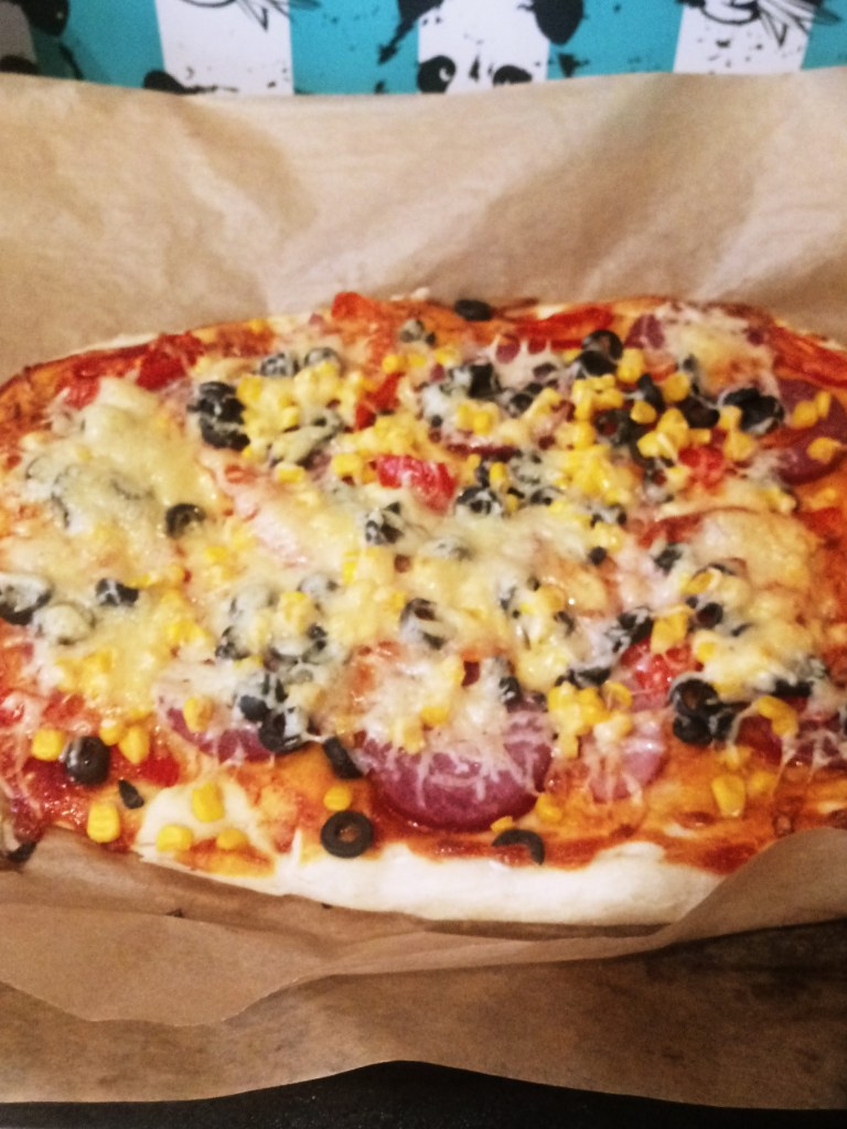 See below my pizza. I used corn because I did not have mushrooms. The last picture is with my candles, my night set up. I love candles.