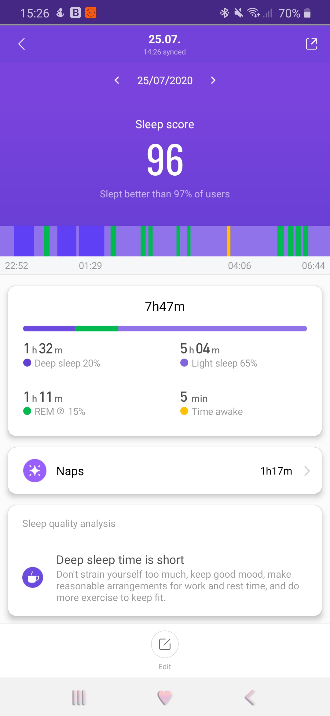 - It tracks sleep and naps. During my first night, I got the best sleeping score. 96 from 100 points. I knew I was good at sleeping and now I have confirmation.