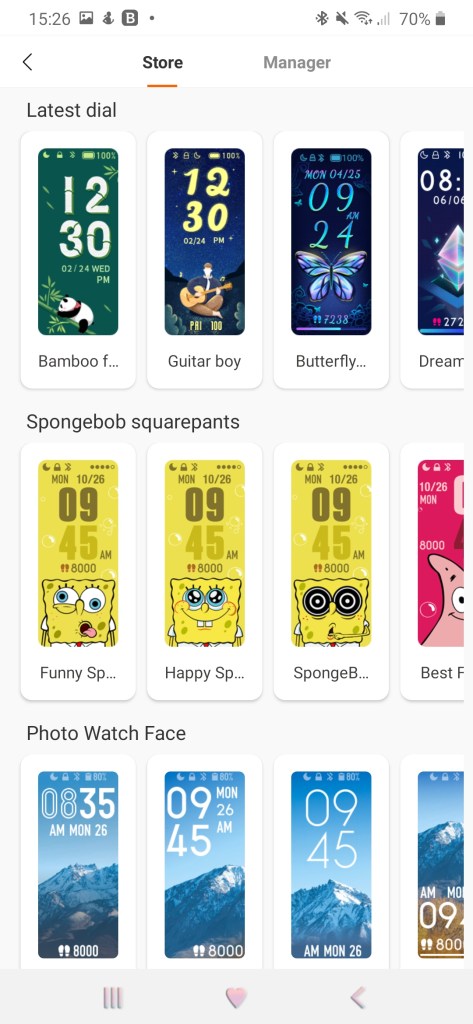 2. You have a lot of watch faces. I like to change them a lot, right now I am in love with the Sponge Bob theme. I looked in Mi fit app, there are only around 70 watch faces but I guess they will add more in time.